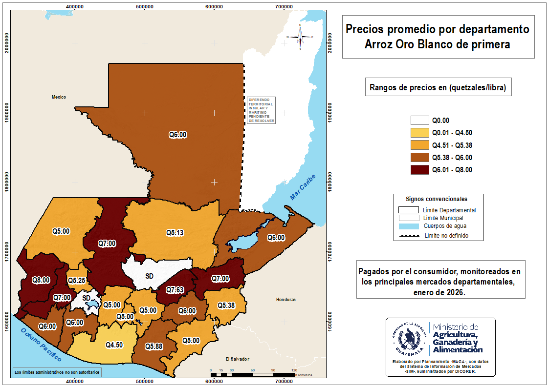 Mapa de precios departamentales de arroz oro - Enero 2026.png