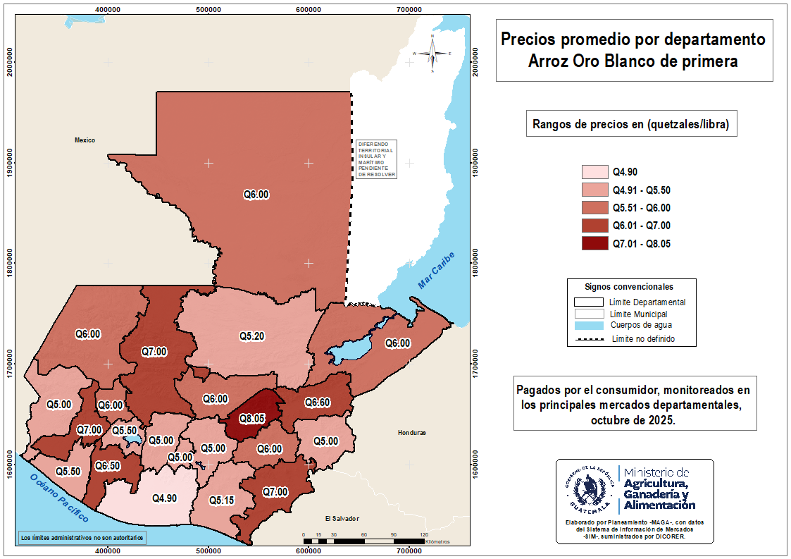 Mapa de precios departamentales de arroz oro - Octubre 2025.png