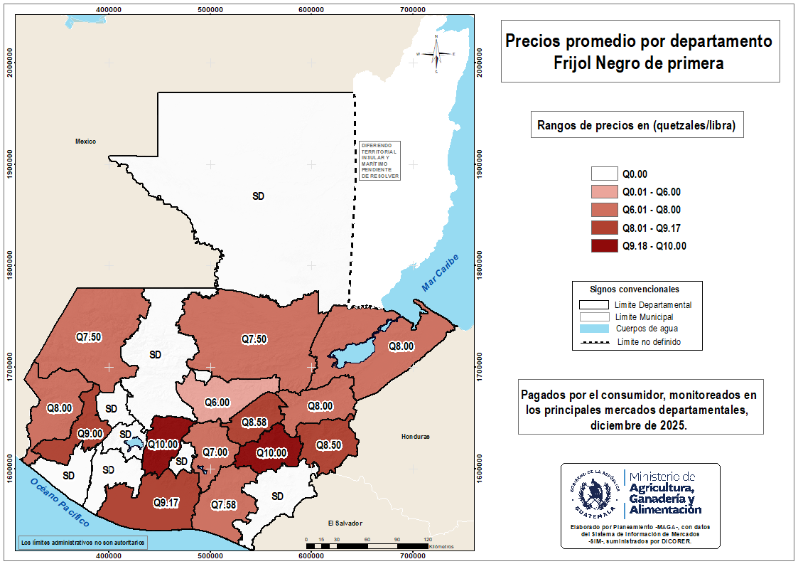 - Mapa de precios departamentales de frijol negro - Diciembre 2025.png