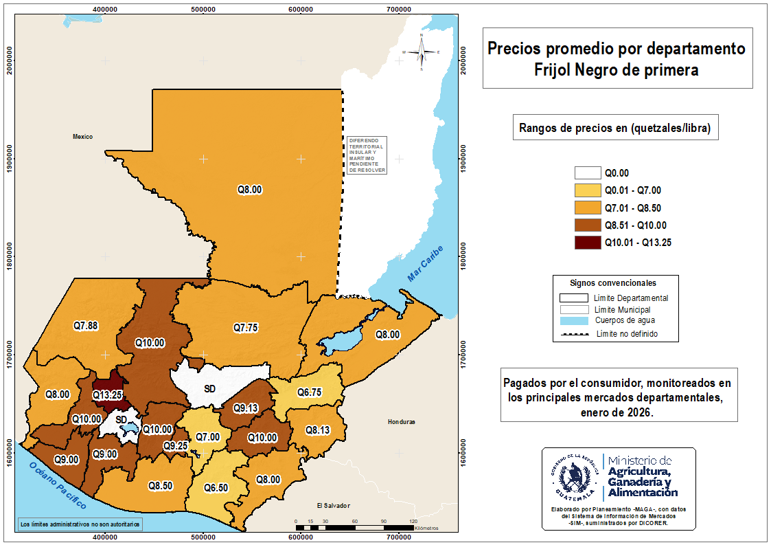 Mapa de precios departamentales de frijol negro - Enero 2026.png