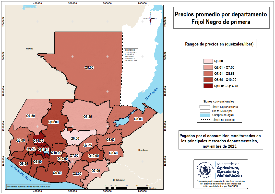 Mapa de precios departamentales de frijol negro - Noviembre 2025.png