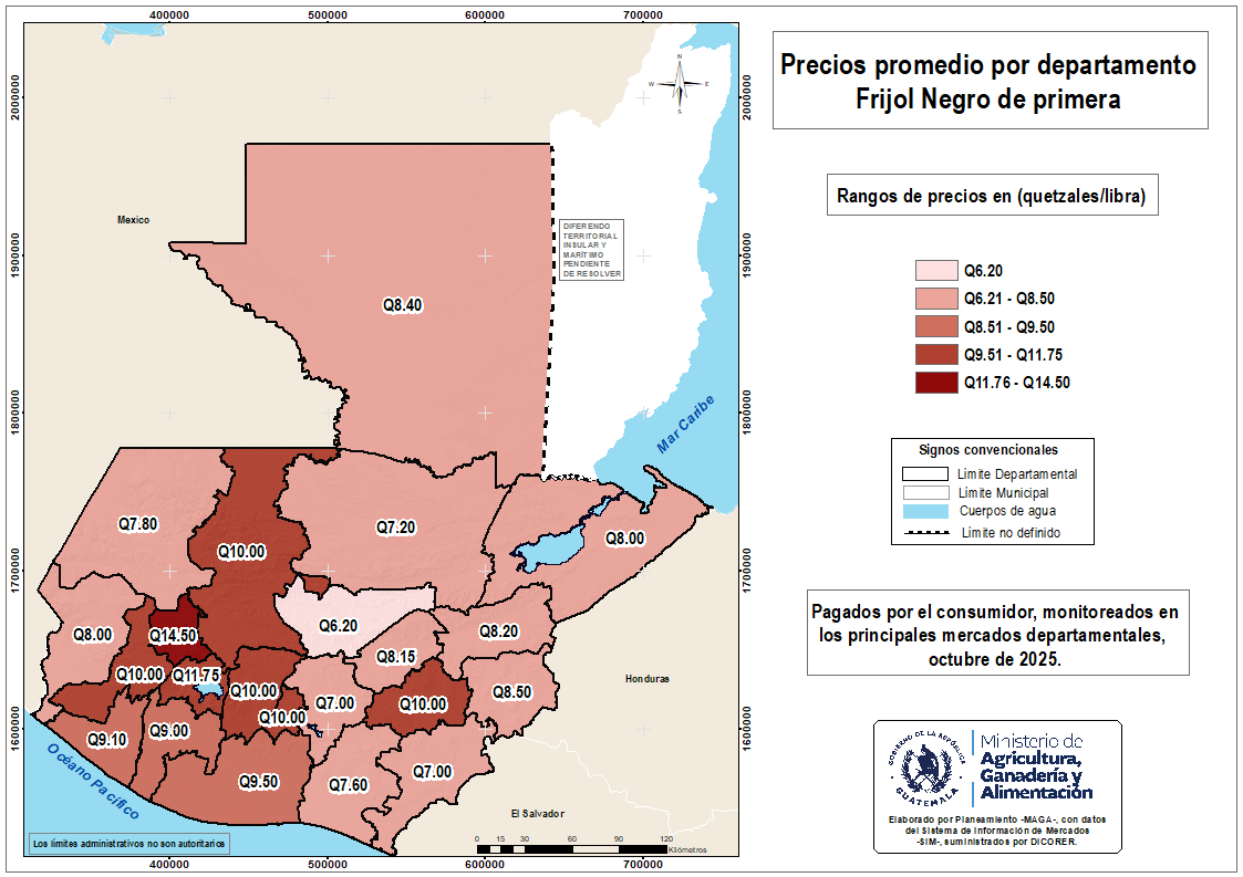 Mapa de precios departamentales de frijol negro - Octubre 2025.png