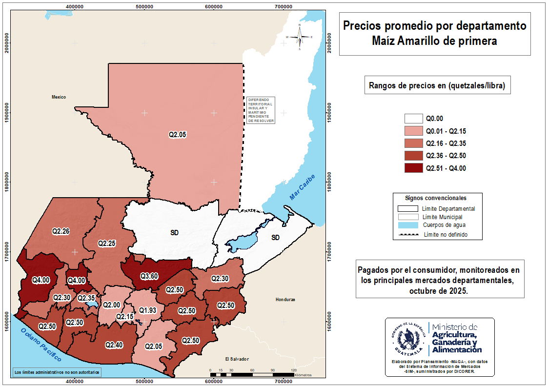 Mapa de precios departamentales de maíz amarillo - Octubre 2025.png