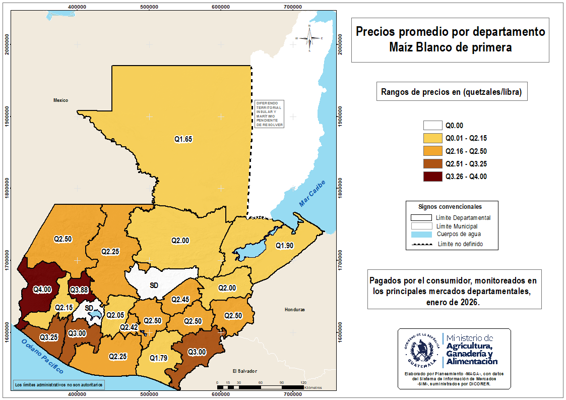 Mapa de precios departamentales de maíz blanco - Enero 2026.png