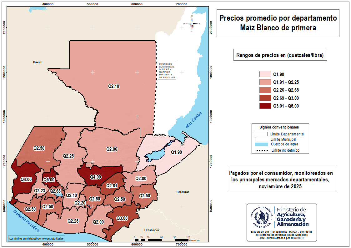 Mapa de precios departamentales de maíz blanco - Noviembre 2025.png