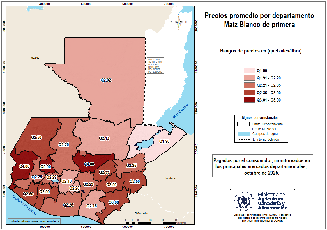 Mapa de precios departamentales de maíz blanco - Octubre 2025.png